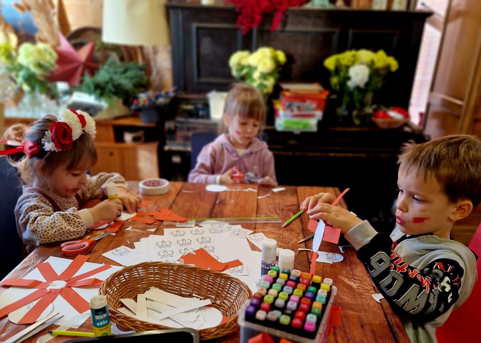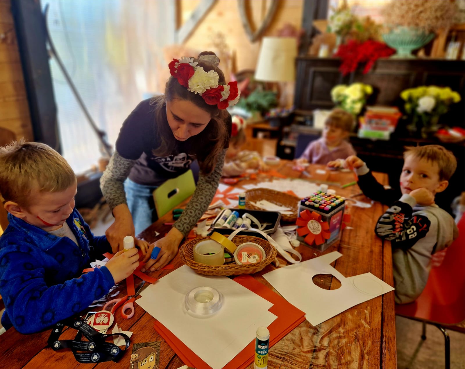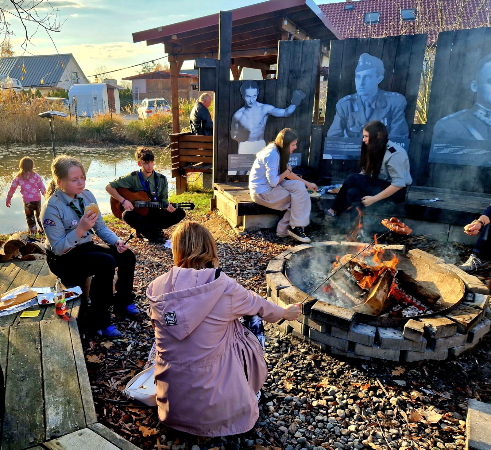 Spotkaliśmy się by razem świętować Niepodległą. Świętowali wszyscy seniorzy, młodzież i dzieci. Mogliśmy bawić się robiąc sobie zdjęcia w rogatywkach, wiankach, artyści śpiewali pieśni legionowe. Sami robiliśmy gadżety patriotyczne (wianki, flagi kotyliony). Był wykład na temat „apteczki szwoleżera” – w co powinniśmy wyposażyć plecak przetrwania na wypadek wojny. Warsztaty strzeleckie z możliwością możliwość zapisania na strzelanie na strzelnicy. Było ognisko kiełbaski, grochówka, ścianka wspinaczkowa dla dzieci. A na koniec biesiada – Stół Rotmistrza